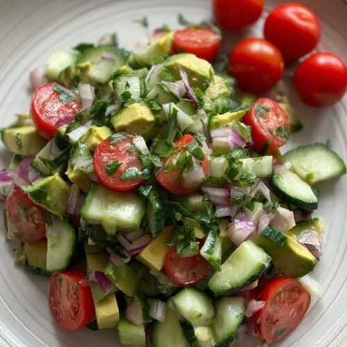 Dieser Avocado Salat kombiniert frische Zutaten mit gesunden Fetten und ist ideal für warme Tage. Er lässt sich schnell zubereiten, schmeckt herrlich cremig und überzeugt mit seiner Einfachheit. In diesem Rezept treffen cremige Avocado, hart gekochte Eier und fruchtige Tomaten aufeinander. Eine Prise Salz, frischer Pfeffer und etwas Zitronensaft machen daraus ein herrlich ausgewogenes Gericht, das nicht nur optisch überzeugt, sondern auch nährstoffreich ist. Wenn du nach einem einfachen Gericht suchst, das sich auch hervorragend als Grillbeilage oder leichter Snack zwischendurch eignet, ist dieser Avocado Salat genau das Richtige. Perfekt für salate rezepte gesund einfach, salate zum grillen oder als Teil deiner sommerlichen Küche.