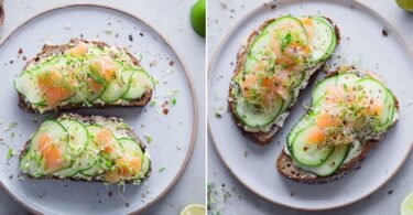Deftiges Frühstück: Gesundes Brot mit Gurke und Lachs