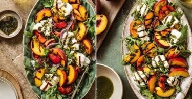Gegrillter Pfirsich-Burrata-Salat mit frischen Kräutern – Salate