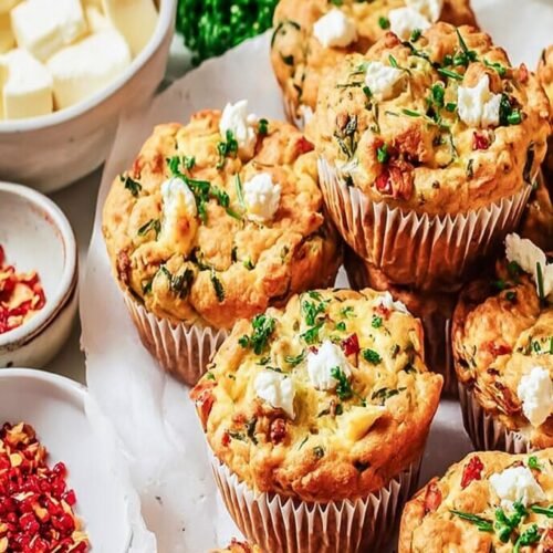 - Herzhafte Muffins mit Schafskäse und frischen Kräutern sind eine köstliche Abwechslung zu süßen Varianten.