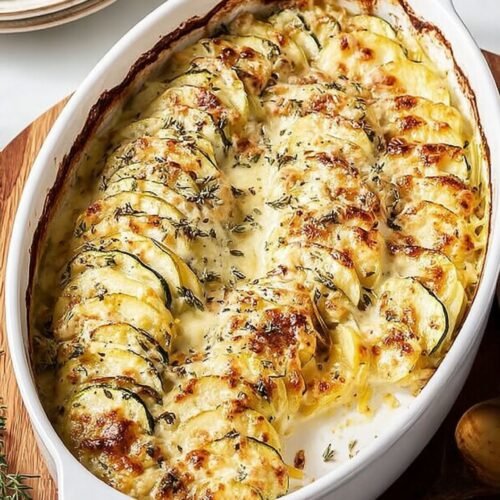Kartoffel Auflauf mit Zucchini ist eine klassische, herzhafte Mahlzeit, die mit wenig Aufwand zubereitet werden kann. Die Hauptzutaten bestehen aus frischen Kartoffeln, Zucchini, cremiger Sahnesoße und Käse. Dieser Auflauf bietet ein sättigendes, vielseitiges Gericht, das sich leicht variieren lässt.