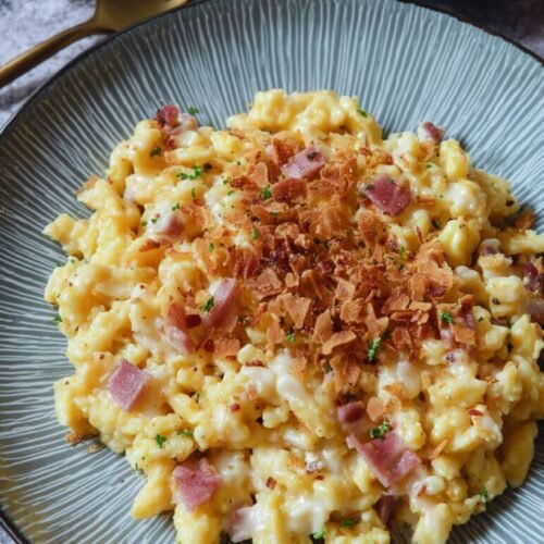 Das Gericht lässt sich gut vorbereiten. Du kannst die Spätzle mit Zwiebeln anbraten und die Ei-Käse-Mischung separat aufbewahren. So bleibt alles frisch, bis du es servieren willst.
