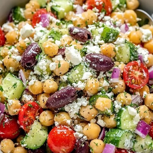 Dieser mediterrane Kichererbsensalat mit Tzatziki-Dressing ist ein erfrischendes Gericht voller Geschmack und gesunder Zutaten. Er vereint knackige Gurken, saftige Tomaten, cremiges Tzatziki und proteinreiche Kichererbsen zu einem perfekten Sommergenuss. Mit einem Hauch von Knoblauch und Zitrone entsteht ein Dressing, das alles wunderbar abrundet. Wenn du Salate liebst, wirst du diese Kombination besonders mögen. Das Gericht eignet sich hervorragend für leichte Mittagessen, als Beilage zu Gegrilltem oder für deine nächste salad bowl. Das cremige salat dressing mit Joghurtbasis bringt frischen Wind in deine Küche. Ob du nach einem neuen tzatziki rezept suchst, Ideen für wraps rezepte dressing brauchst oder salate rezepte gesund einfach entdecken möchtest – dieses Gericht passt perfekt. Es lässt sich gut vorbereiten und schmeckt auch am nächsten Tag wunderbar aromatisch.