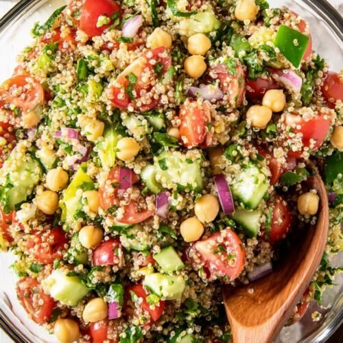 Dieser sommerliche Quinoa Salat ist ein echtes Highlight für warme Tage. Er verbindet frische Zutaten wie Paprika, Gurke und Tomaten mit dem nussigen Geschmack von Quinoa und einem erfrischenden Zitronendressing. Ob als leichtes Mittagessen oder als Beilage zum Grillabend – dieser Salat passt immer. Durch die Kombination aus pflanzlichem Eiweiß, knackigem Gemüse und gesunden Fetten ist dieser Quinoa Salat nicht nur lecker, sondern auch ausgewogen. Besonders im Sommer, wenn man Lust auf etwas Leichtes hat, ist dieses Gericht genau richtig. Die Zubereitung ist einfach und unkompliziert. Ob für den Alltag oder Gäste – dieser Salat überzeugt auf ganzer Linie und bringt Frische auf den Tisch.