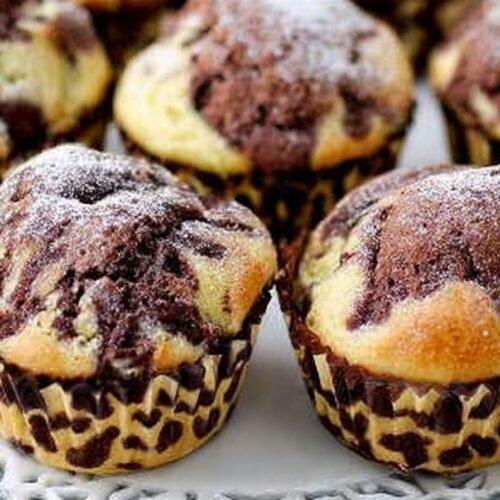 Hellen und dunklen Teig abwechselnd in die Förmchen füllen und mit einer Gabel spiralförmig vermischen.