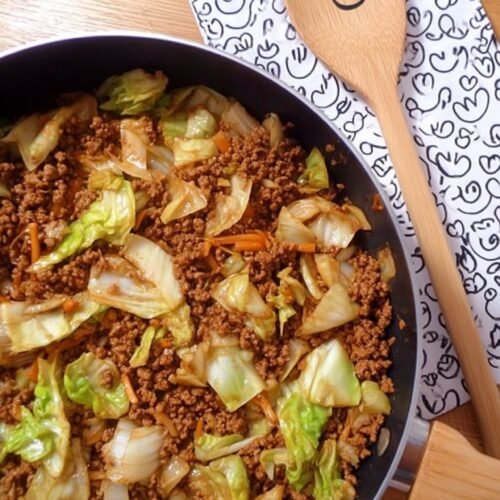 Sesamöl in einer großen Pfanne erhitzen und das Hackfleisch scharf anbraten.