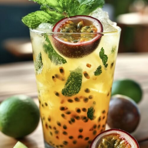 Leicht umrühren und mit einem Minzzweig garnieren.